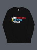 Dice, Potions & Saving Clean, clever, and understated. This design is perfect for Dungeon Masters who prefer subtle references and minimalist design, especially on a long-sleeved tee. | Darkvision Lore-driven and low-key. This is a favourite among experienced DMs who like their references sharp but quiet, especially on a black T-shirt. |